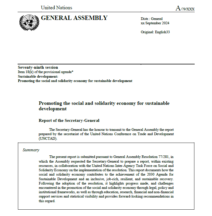 The event has been organised by the United Nations Task Force on Social Solidarity Economy (UNTFSSE) since in the framework of the UN resolution 77/281 ‘Promoting social and solidarity economy for sustainable development’, the General Assembly requested the Secretary General to prepare a report, in collaboration with the UNTFSSE, to follow up on the resolution. This report was submitted on 14/10/2024 to the UN Economic and Financial Commission (Second Committee), and will open negotiations to update the UN resolution on the SSE.