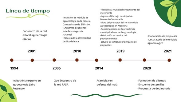Fig. 2. Línea del tiempo de Proceso del Municipio Agroecológico de El Limón, Jal. Mex. Sánchez, L.D. 2021.