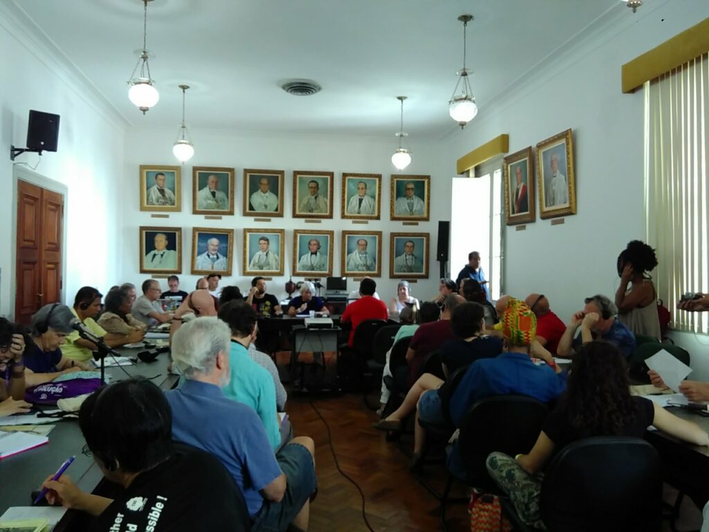 The 15th of March the presentation activity was attended by some thirty interested people, including the organizers of the WSF of Quebec in 2016, representatives of the Forum of solidarity economy in Brazil (FBES), ATTAC, of the COLACOT (Coordination of Latin American cooperatives), the dialogues Rede em Humanidad and of the Alliance of progressive foundations EDGE.