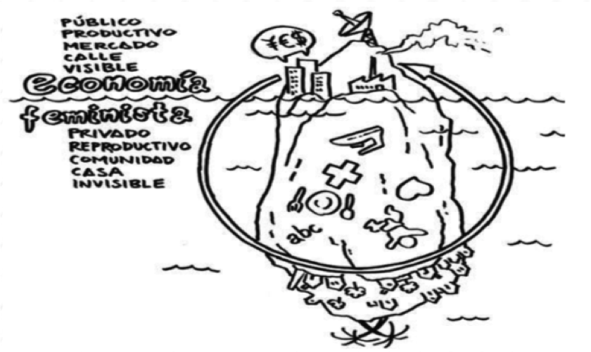 Depuis l’économie féministe, Maria a souligné combien notre système productif et les marchés qui le soutiennent ont pu se développer, et se maintiennent encore, grâce au support de l’incontournable économie du soin (largement invisible aux yeux du système hétéro-patriarcal). Cette face cachée de l’iceberg, historiquement et socialement attribuée aux femmes, est une des revendications fortes du mouvement féministe. C’est un levier important à soulever au sein de l’ESS. L’économie du soin, où l’on retrouve notamment le travail domestique, reproductif, ou encore l’éducation des enfants, doit pour autant se placer au centre de nos vies et de nos structures sociales.