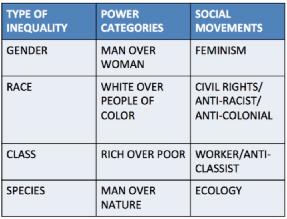 - Exclure tout type d’oppression envers les femmes, les races, les classes, et l’environnement.