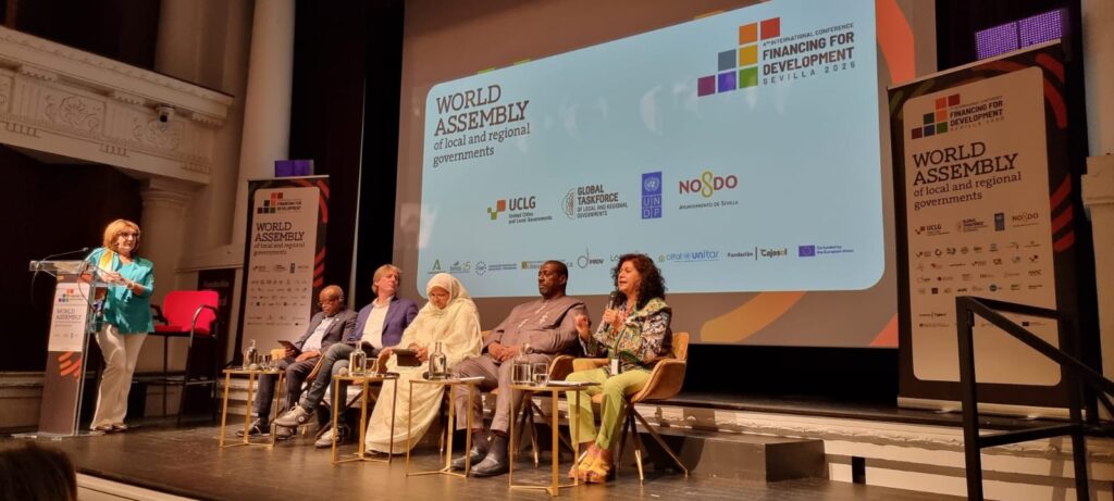 Lors d’une deuxième session, animée par M. Carlos de Freitas, secrétaire général du FMDV, M. Madani Koumaré, président du Réseau africain de l’économie sociale et solidaire (RAESS) et co-coordinateur du RIPESS, a présenté le modèle MEREF-SDF du Mali et la proposition du RIPESS «Mise en oeuvre des Recommandations de l’ONU sur le Financement de l’Économie Sociale Solidaire : Propositions pour une approche organisationnelle intermédiaire générique.” M. Rodrigo Peñailillo, directeur représentant en Colombie, Banque de développement de l’Amérique latine et des Caraïbes (CAF), a ensuite souligné les progrès importants réalisés par la Banque de développement de l’Amérique latine et des Caraïbes dans la promotion de l’ESS, en mettant l’accent sur les projets développés dans le sud de la Colombie. M. Philippe Akoa, PDG du Fonds Spécial d’Équipement et d’Intervention du Cameroun (FEICOM), qui collabore avec divers réseaux de gouvernements locaux dans son pays pour renforcer l’ESS et soutenir les communautés rurales, est ensuite intervenu. Pour sa part, Mme Fatimetou Abdel Malick, présidente de la région de Nouakchott (Mauritanie), présidente de Cités et gouvernements locaux unis (CGLU)-Afrique, présidente de la Commission permanente sur l’égalité des genres de CGLU et vice-présidente du FMDV, a partagé sa vision de l’interdépendance entre l’avancement de l’agenda économique local en Afrique du Nord et le renforcement des communautés vulnérables grâce à des alternatives économiques durables, centrées sur les personnes, fondées sur la justice sociale et les droits humains. Enfin, Mme Emilia Saiz, secrétaire générale de CGLU, a apporté une analyse à long terme sur l’expansion de l’économie sociale et solidaire, qui pourrait favoriser une véritable transformation face aux crises actuelles grâce à la localisation et à l’interconnexion avec la collaboration de multiples parties prenantes. Mme Moreno a conclu la session en demandant que la réunion parallèle fasse l’objet d’un suivi, en tenant compte des observations finales de Mme Saiz, et en soulignant la nécessité de renforcer l’agenda multilatéral en défendant à la fois une convention des Nations unies sur la fiscalitéet une convention des Nations Unies sur la dette, car elles sont directement liées à l’avancement de l’ESS. Aucune réalisation de l’ESS  n’aura de vision à long terme sans le soutien d’une coopération fiscale mondiale solide et d’une restructuration de la dette souveraine.