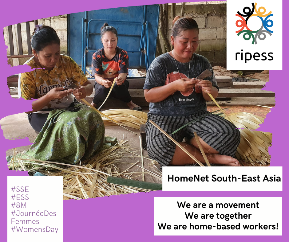 HOMENET SUDESTE ASIA (HNSEA) est le réseau régional des réseaux nationaux de travailleurs à domicile, notamment l’Association des artisans du Cambodge (AAC), l’Association des travailleuses à domicile d’Indonésie (HWPRI), l’Association à but non lucratif pour le développement du Laos (NALD), HomeNet Philippines (Patamaba), HomeNet Thaïlande, CraftLink du Viêt Nam et eHomemakers de Malaisie. Le réseau assure la participation collective de ses membres travailleurs à domicile à la recherche de solutions appropriées à leurs problèmes et questions par le biais de la sensibilisation, de la mise en réseau et de l’établissement de liens, de la mobilisation des ressources, de la formation et de la mise en œuvre de projets de développement pour la durabilité et l’autosuffisance. L’ASEC, le Conseil asiatique de l’économie solidaire, notre partenaire sur le continent, travaille en étroite collaboration avec HomeNet. Dans cette photo vous pouvez voir notre coordinatrice ASEC, Eri Trudini, participer à la dernière réunion du HomeNet.
