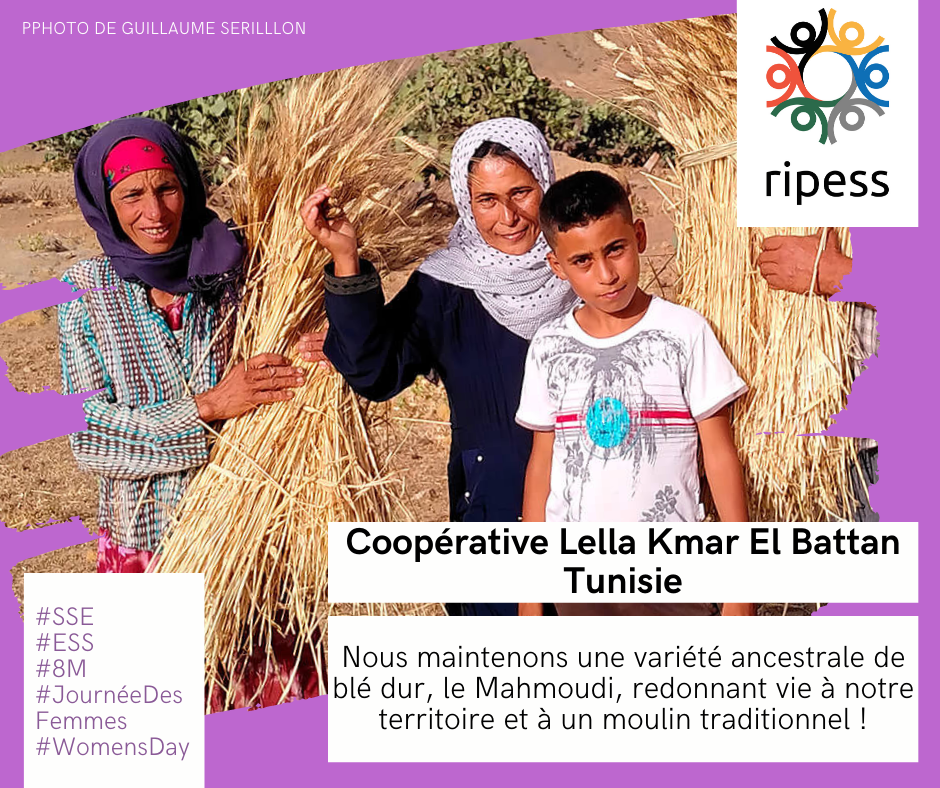 La Cooperative Lella Kmar الشركة التعاونية المركزية للا قمر البية est un projet de ETHIQUABLE, coopérative de solidarité française qui travaille avec des petits producteurs et fait partie de Ripess Europe. En Tunisie, LellaKmar est un atelier de transformation du blé en couscous géré par des femmes? depuis 2022.
