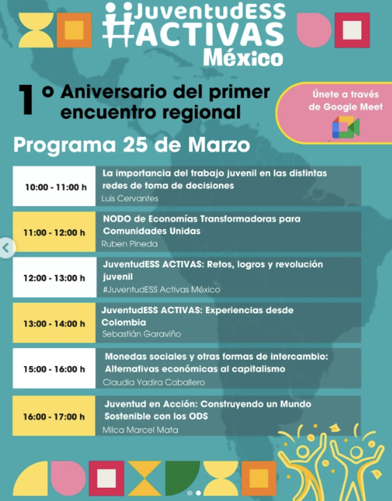 Depuis RIPESS Intercontinental, nous saluons l’engagement et l’énergie de JuventudESS Activas et réaffirmons notre soutien à la jeunesse en tant que moteur de changement au sein de l’ESS, également à travers le travail d’un groupe de jeunesse intercontinental. Félicitations pour cette première année de travail et pour les nombreuses autres à venir !