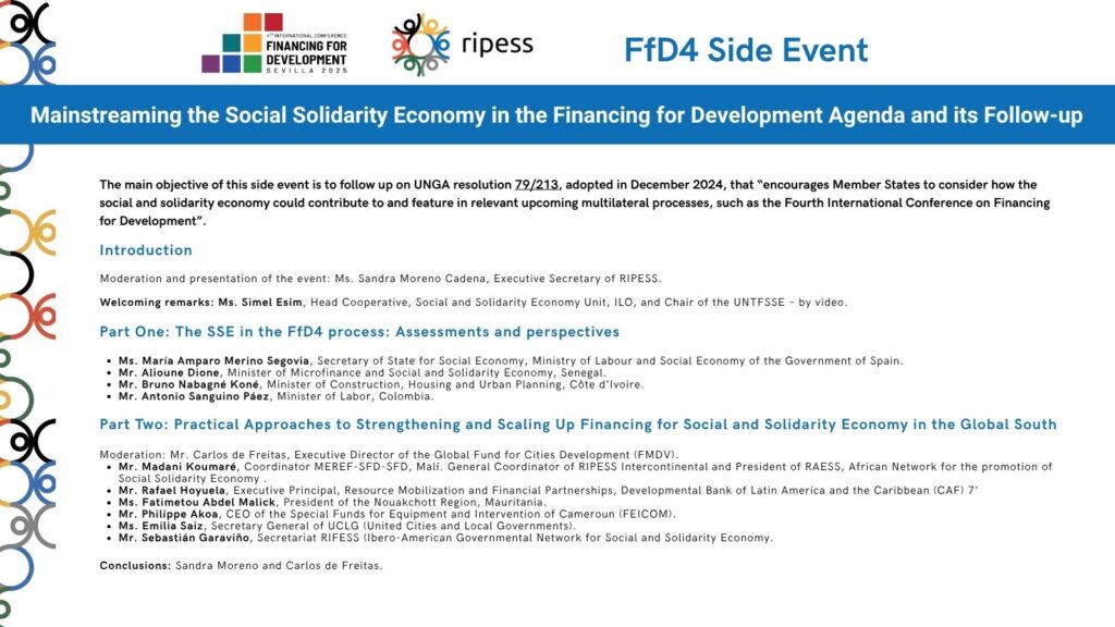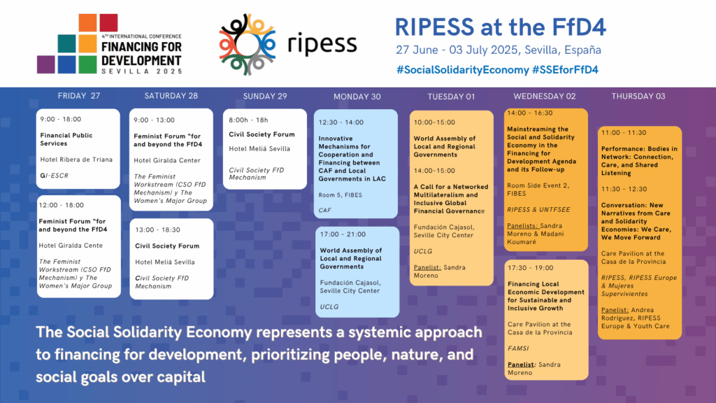 RIPESS will actively participate in the Fourth International Conference on Financing for Development (FfD4), to be held in Seville from June 30 to July 3, 2025.