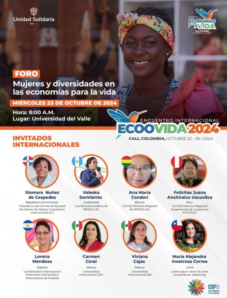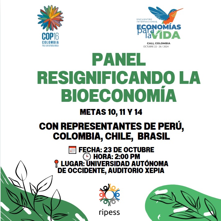14h00-18h00 – Comité de pilotage régional du RIPESS LAC. Rencontre avec des expériences de circuits économiques solidaires – CONFIAR et rencontres avec des réseaux internationaux. Zone verte – COP16 (Cali)