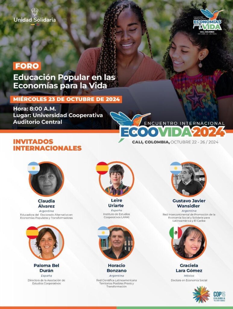 ECOOVIDA – Forum sur la solidarité, l’éducation populaire et communautaire dans les économies pour la vie. Université coopérative, Auditorium central (Cali).
