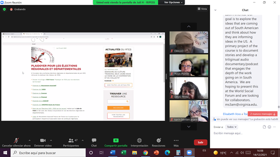 Dans la première session du webinaire, les participants ont entendu des expériences de co-construction de politiques publiques d’ESS en Afrique, en Amérique latine et en Europe. Elyse Pierrette, secrétaire générale du réseau RAESS Afrique et présidente du réseau ESS camerounais, a présenté la façon dont le réseau ESS et d’autres acteurs nationaux et locaux participent au processus de co-construction qui se déroule actuellement au Cameroun, ainsi que la stratégie du réseau dans le processus participatif.